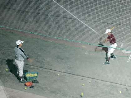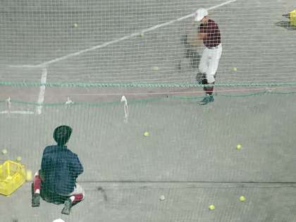 その明かりを利用して、野球部は朝練のスイングをしっかりと固定させるために、トスバッティングを行っていました。