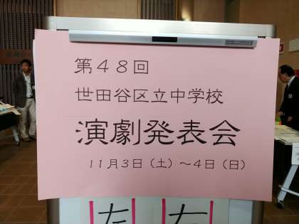 本日、成城ホールで世田谷区立中学校演劇発表会が行われました。本校の演劇部も出演しました。