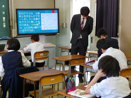 グラフを読み取る学習をそれぞれのコースに併せた授業展開で進めました。
