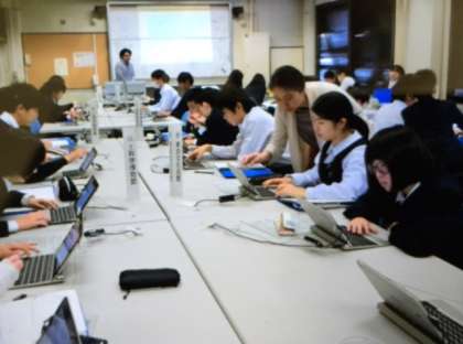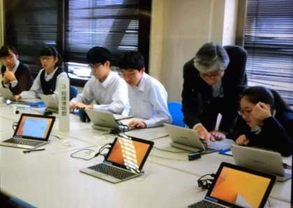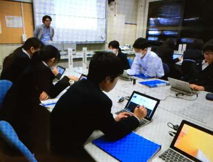本日、各クラスごとに講師の先生からスライドの作り方について学んでいます。