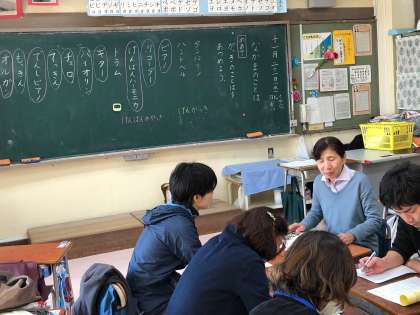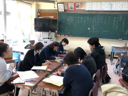 ねづやま夢の学び舎合同研修会を行なっています。授業の後の各教科ごとの研修会では、今日の授業を振り返って、学び舎の研究テーマ「思考力、表現力を伸ばす」ための話し合いをしています。写真は、国語分科会の様子です。