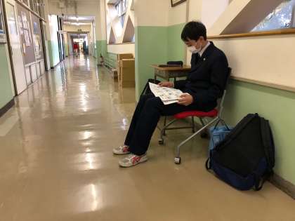 廊下で順番を待っている 生徒たちは緊張しているようでしたが、みんな引き締まった良い表情をして、面接に臨んでいました。