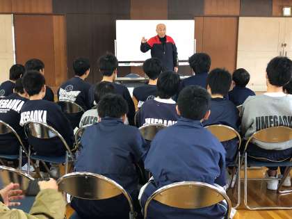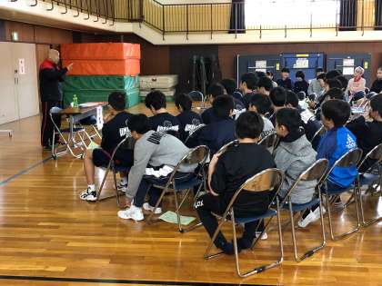 日本コアコンディショニング協会スーパーバイザー宮本英治さんを招いて、コア(体幹)を鍛えるトレーニングを行なっています。梅中生もたくさん参加しています。