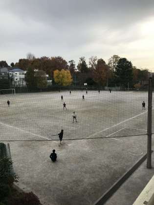 2年男子はベース型の競技に入りました。工夫されたルールで、白熱した試合を行なっています!