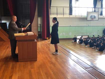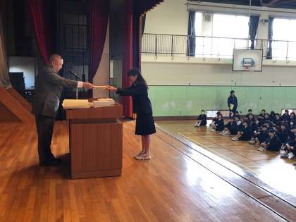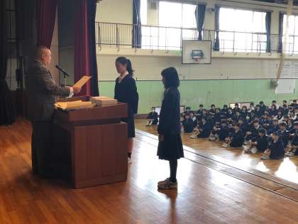 率先して社会福祉活動に参加し、地域の人たちとの交流を深めたということで世田谷区から梅中生徒会が表彰されました。