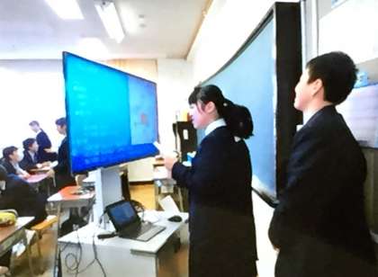 本日、グループごとにパワーポイントを用いて校外学習で訪れるエリアにある施設について調べたことを発表しました。