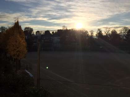 寒風に黄葉が舞い、校庭の木々も冬支度真っ只中です。