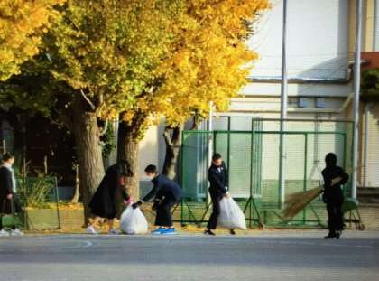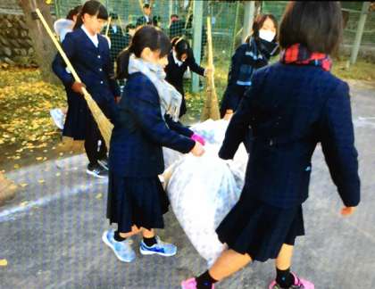 袋いっぱいのずっしりと重い落ち葉を協力しながら運んでいました。今日は、なんと10袋をこえました!
