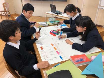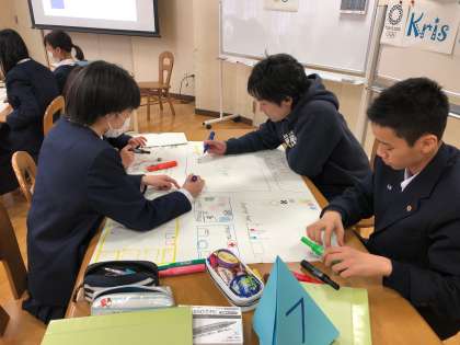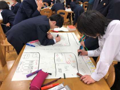 20分で仕上げるのは大変ですが、だんだん出来上がってきました。担任の先生も生徒に混じって作業に参加しています。