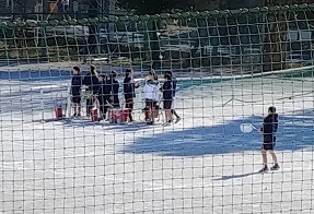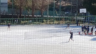 冬季休業中最後の今日、テニス部の生徒たちが元気よく部活動を行っていました。テニス部は、この1月から研修大会・個人戦(練習大会)が始まります。4月からの春季大会に向けて、体力・気力・技術力を身に付けるべく頑張ってください!