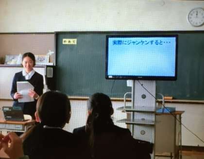 『じゃんけん』という身近なテーマに、生徒たちも興味深く聞いていました。