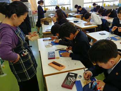 1年生の美術は、木彫の授業でした。