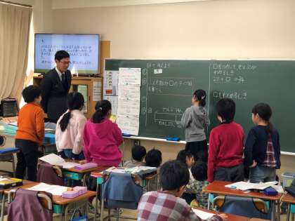 2年生の算数、4年生の英語の授業風景です。英語の授業では、今日の振り返りをしています。
