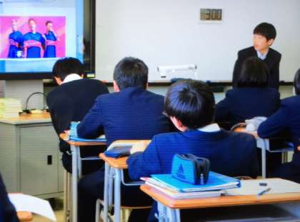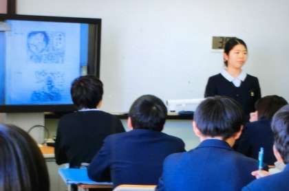 B組の英語の授業で「自分の好きなもの・こと」についてスピーチしました。イラストや写真などを用いながら、自身の思いを伝えていました!