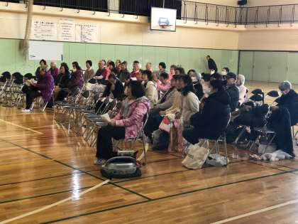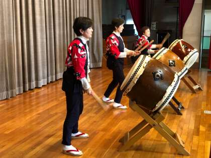 第10回梅中ふれあいフェスタが開催されています。「ひろげよう地域の輪、ふれあいの輪」と題して行われるこのフェスタは、近隣地域で活動しているサークルの発表、体験、交流の場です。まずさ、勇壮な「勇々太鼓」の演舞です。