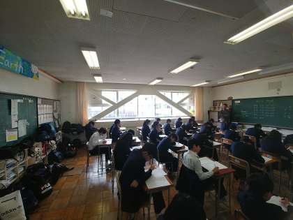 2年生は本日、学習内容確認テスト(実力テスト)を行っています。