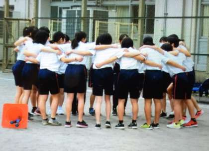 余った時間はクラスを超えてチームを作り、ケードロを楽しみました!警察チームはジャージを脱ぎ、体育着姿で円陣を組んでから出動していました!