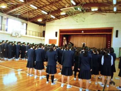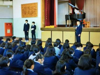 パート練習後に、体育館に全パートが集まりました。全体の進行役は2年生の学発委員が務めました。曲ごとに、指揮者が歌い方の修正ポイントなどを丁寧に解説していました。