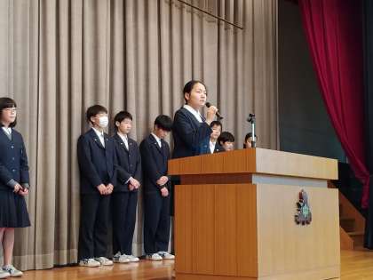 集会では、後期生徒会の各委員会より、活動報告がありました。どの委員会の報告も、しっかり自分たちの活動を振り返り、次の活動につなげようとしている様子が伺えました。