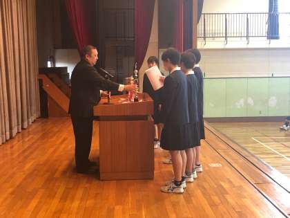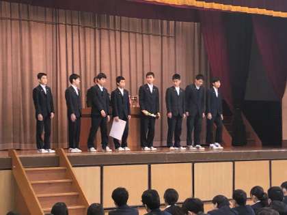 また、冬季世田谷区大会で準優勝した男子バスケットボール部、優勝した女子バスケットボール部の表彰がありました。みんな、よく頑張りました!