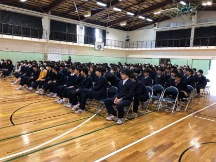 3年生最後の学年集会が、学年委員を中心に行われています。今日は、いろいろ特技を持った人たちが、その技術を披露する会です。