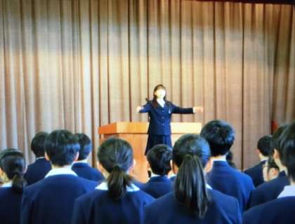 今日は、平成30年度第3学期修了式でした。卒業式を終えて、校歌の指揮・伴奏は2年生にチェンジです。緊張しながらも、指揮者となった2年生は、「しっかり声を出そう!」とみんなに呼びかけていました。