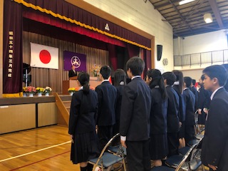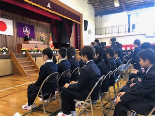 担任の先生から名前を呼ばれ、元気に返事・起立しています。
