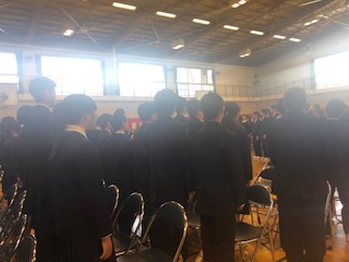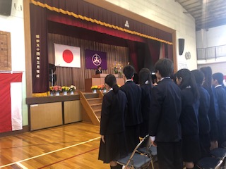 在校生代表の生徒が、充実した学校生活を送るためのポイントを紹介し、困ったこがあったらなんでも相談するように助言しました。