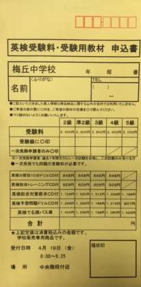 申込み封筒他、英検関係の詳細は中央階段2階のホワイトボードにも掲示しています。