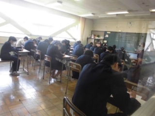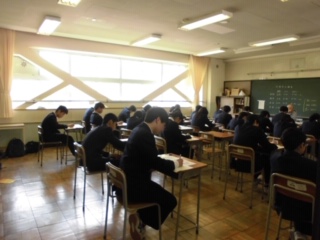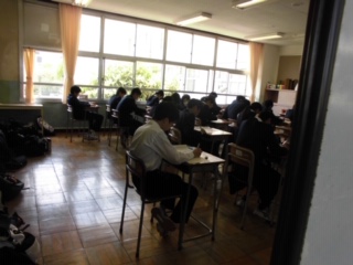 3年生が全国学力調査を真剣に受けています。