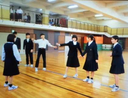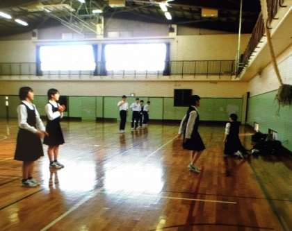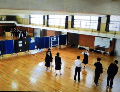 本日から3年生の応援団による練習が始まりました。早速、音楽に合わせて振付の創作を行っていました。