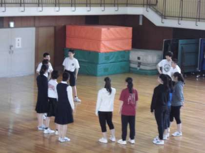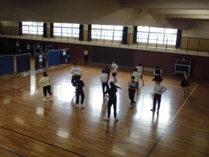 今日は日本女子体育大学附属二階堂高校の生徒さんが来て、梅中3年応援団員に指導してくださっています。梅中3年生が考えたダンスを見てもらい、アドバイスをいただいています。集団で踊れ、見栄えのするダンスになるように、踊りの技術を教えてもらうだけでなく、クラスや後輩たちに教える時のコツなどを教えてもらっています。3年生がダンスを作り上げる期間は4月23日(火)までで、24日(水)から5月13日(月)までは3年生全員と1,2年の応援団員にそのダンスを教えてい期間となります。この最初の創作の段階が、体育祭へ向けての大事な時期となります。