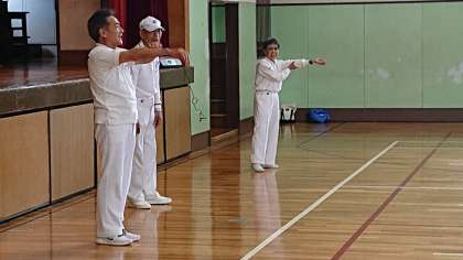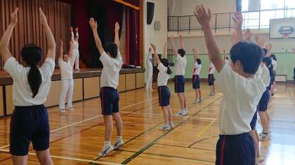 朝7時20分より、世田谷区ラジオ体操連盟から3名の指導員の方をお招きし、体育委員がラジオ体操の逆バージョンの講習を受けました。(副校長)