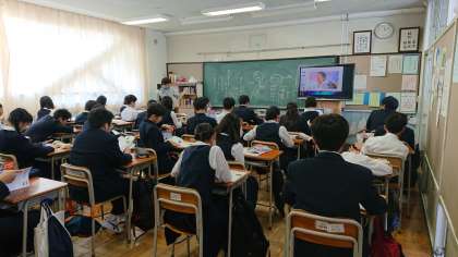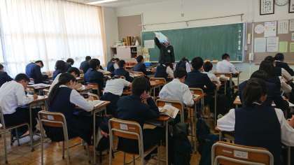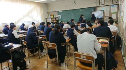 「風に立つライオン」を題材とした授業です。自分の考えをまとめて、意見や感想を発表します。 (副校長)