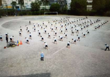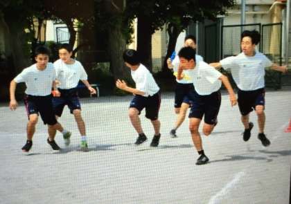 ラジオ体操、100m走の確認後に全員リレーを行いました。