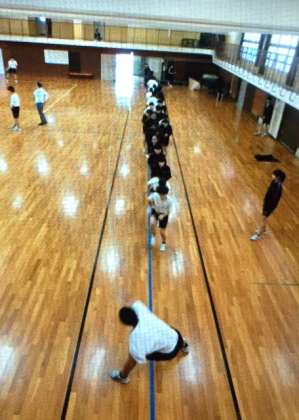 体育館と格技室を3クラスで回しながら行い、クラスごとに確認しておきたいところを中心に練習を進めました。