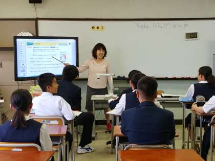 3年生の英語は、「日本文化を紹介しよう」という授業でした。