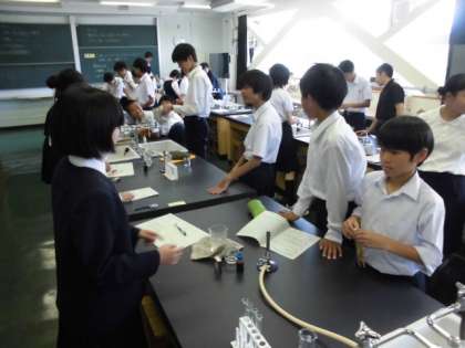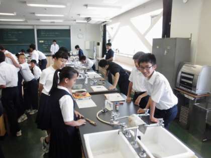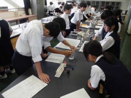 理科の授業で、だ液にはどのような働きがあるか実験をして確かめました。ヨウ素液でデンプンの有無、ベネジクト液で糖の有無を調べました。(篠原)