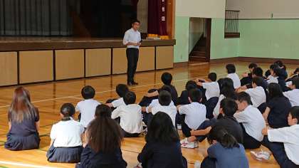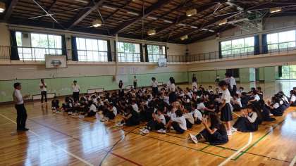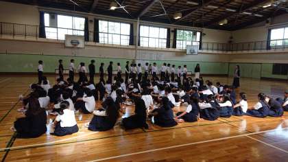 体育祭の反省、高橋先生の講評、体育委員への感謝の拍手、1年生の体育祭への貢献に対して、お互いにたたえあい拍手を送りました。初めての体育祭でしたがほんとうに1年生は頑張りました。おしゃべりなどしないで一列で退場します。(副校長)
