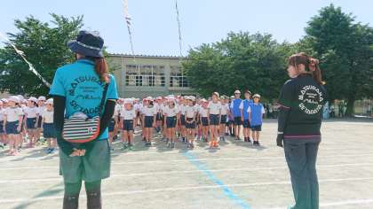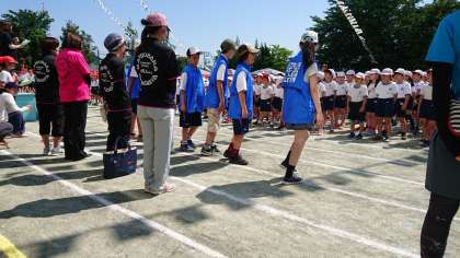 梅丘中から生徒会と有志のボランティアとして運動会のお手伝いとして参加させていただきました。開会式では紹介もしていただきました。(副校長)