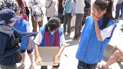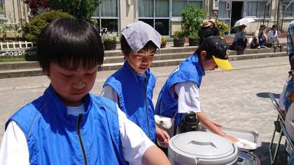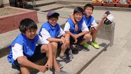 代田小のボランティア、仕事の分担をして、水分補給もタイミングをみて交替で仕事をしています。(副校長)
