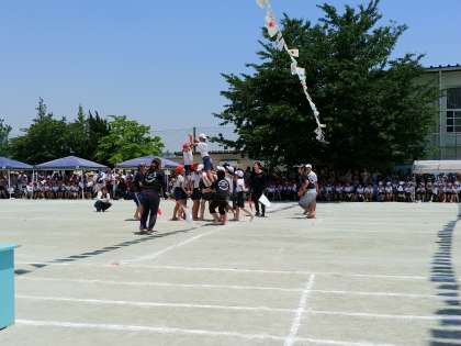 5,6年生による騎馬戦(令和の初陣)は見ていて手に汗握りますね。