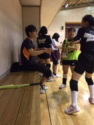 ゲームの合間にコーチに技術的なアドバイスをもらいながら進めています。