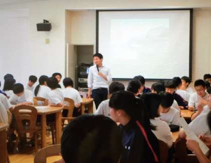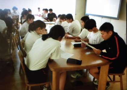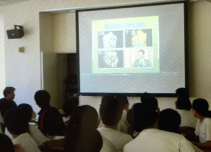 5校時の総合的な学習の時間に3学年は修学旅行の事前学習として、京都の寺社の歴史や祭り、文化などを映像で確認しました。見所や豆知識などがクイズも交えながら次々に紹介され、一緒に予想したり、予想外の解答に驚いたりしながら、視聴していました。