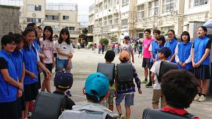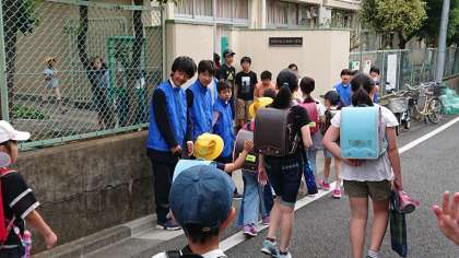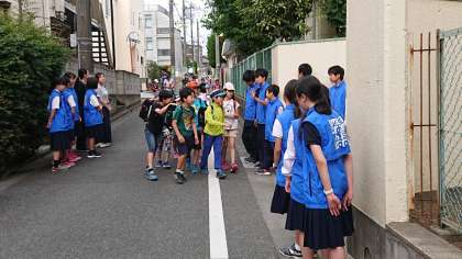 知っている先輩を見て、あいさつをする小学生も多く、これからあいさつをするきっかけになるとよいですね!(副校長)