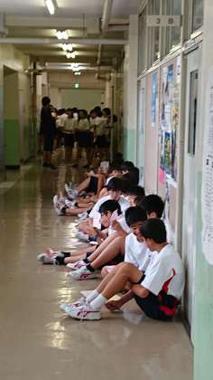 全校生徒が体力テストをおこないます。全教員も配置につき、みんな全力で、去年の自分の記録に挑戦です。1年間でどれだけ成長したかな?体力アップできたかな?楽しみです。(副校長)
