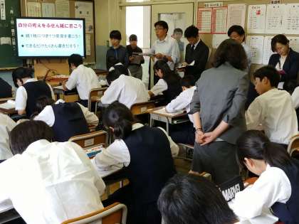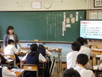 本日、本校の道徳教員推進リーダーの先生が、世田谷区立中学校の研究会で研究授業を行いました。一冊のノートという教材を使い、家族について考えました。最後の発問では、自分自身に置き換えて考えていました。