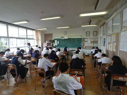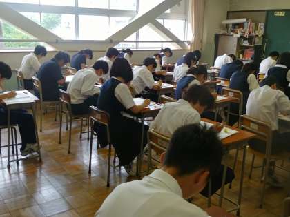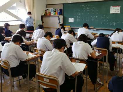 3年生は日頃の学習の成果を確認するだけでなく、進路選択にも関係するテストになります。気合い十分です。