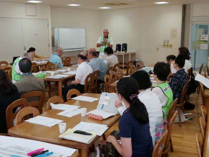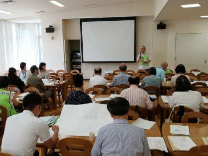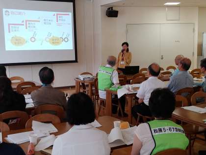 松原5,6丁目自治会の方々を中心とする避難所運営委員の方々が集まり、避難所を開設した時のことを想定して話し合いを行いました。
