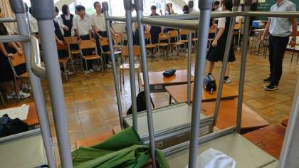 侵入までの時間を稼ぐのが目的です。平らに並べても、すぐ乗り越えられてしまいます。(副校長)